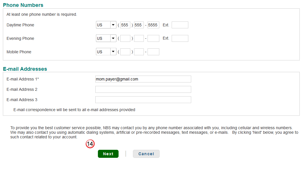 Step 14: Add up to 3 email addresses (email notifications are sent to all emails provided) and proceed to the next step.