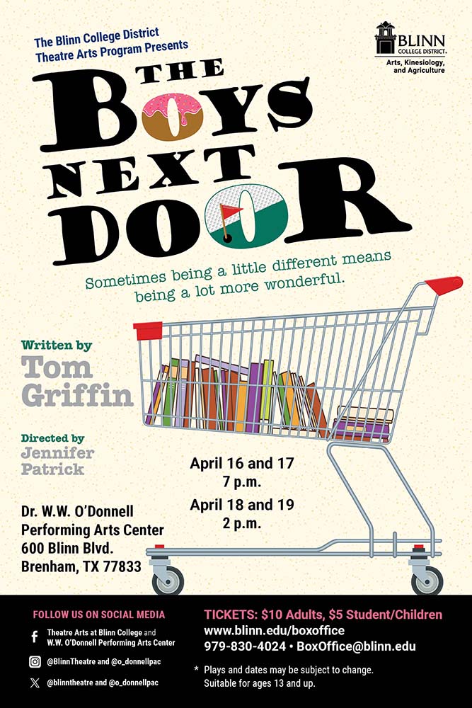Blinn earned gold awards for its 2025–26 Viewbook, designed by Assistant Director for Marketing and Creative Services Darla Arter in the viewbook category, and for a poster promoting the Blinn College-Brenham Campus theatre production of “The Boys Next Door,” designed by Graphic Designer Catherine Muñoz-Myers in the poster category.